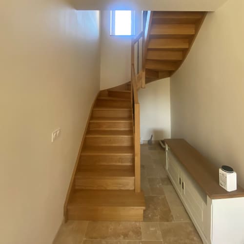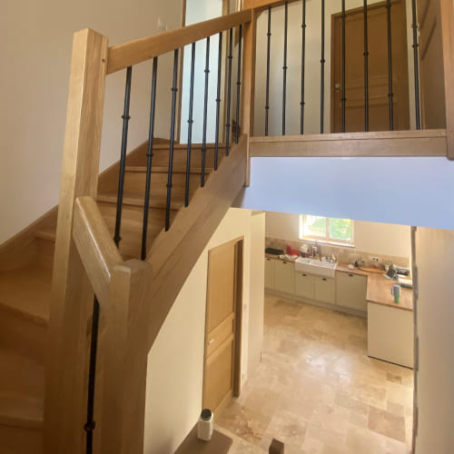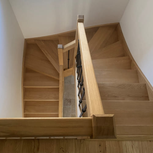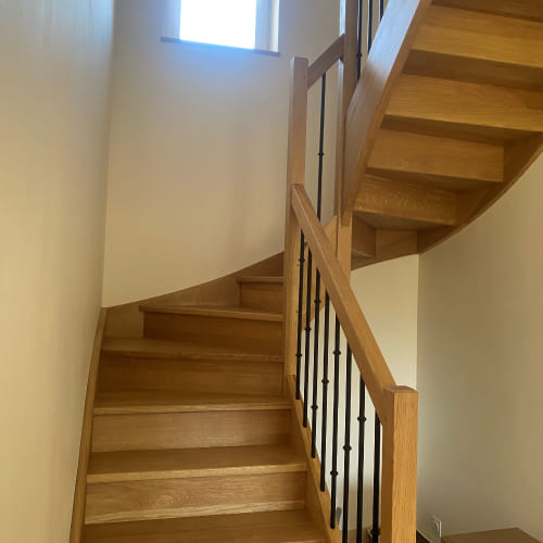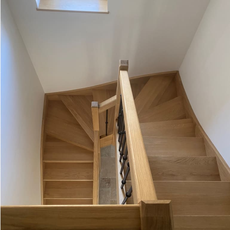 Un escalier 2/4 tournant à jour carré en chêne massif qui a du caractère.